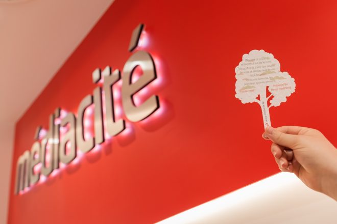 Pour sensibiliser les visiteurs du centre commercial aux dispositifs mis en place en faveur de l’environnement, Médiacité Liège nous a confié la réalisation d’une chasse au trésor pédagogique.