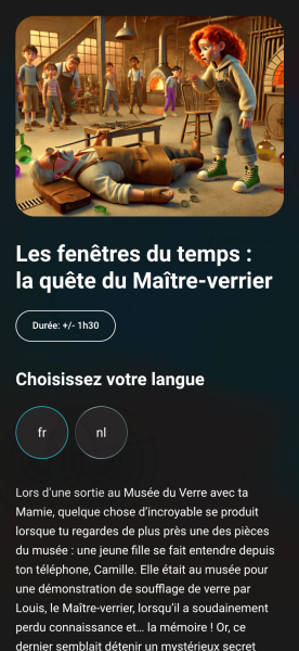 Avec Les fenêtres du temps – La quête du Maître-verrier, Ludifica a conçu une expérience immersive, ludique et pédagogique au cœur du Musée du Verre de Charleroi. Pensé pour les enfants dès 8 ans, les familles et les écoles, ce jeu de piste interactif fait découvrir les collections tout en embarquant les visiteurs dans un récit palpitant.